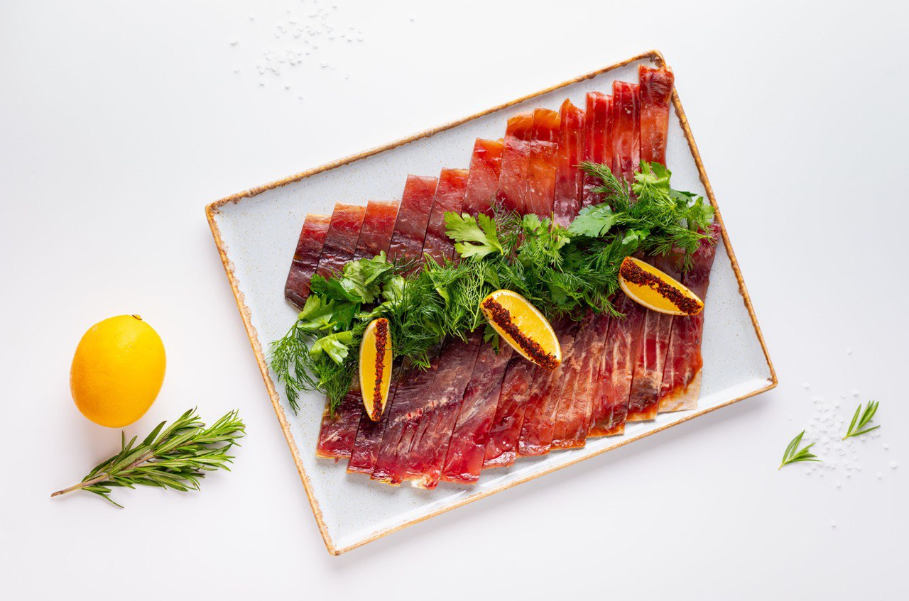 Достать из морозилки, распотрошить и нарезать, засервировать и сразу на стол.